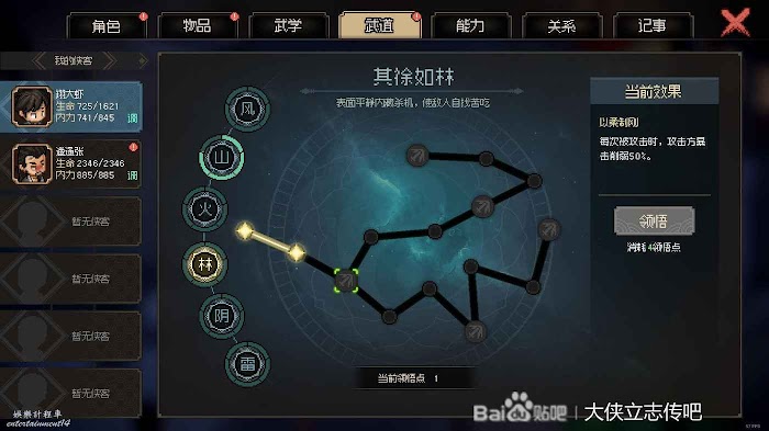 差點忘了說的,武道加點方面,點出山的銅牆鐵壁和積甲如山,然後點到林的還施彼身,按照這個順序加點即可