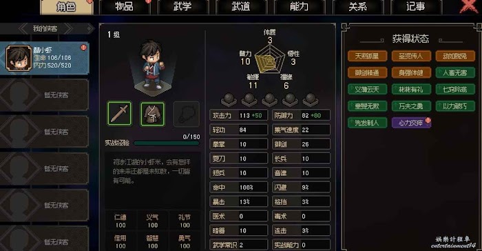 大俠立志傳 (Hero’s Adventure) 第二天獲取無極洞心法教學 17 3 月 2023-03-17 廣告 作者:貼吧用戶_75R19Vy 來源:大俠立志傳吧 思路就是開局直接出樹林可以不用睡三個時辰,然後去野豬林迅速開新手村接著馬上去偷鐵匠身上的鐵夠我們坐船。 因為我們只賣一個鐵身上0文錢所以不會被搶,接著到大樑把兩個鐵剩下的那個賣了,接著去書院打劫或者別的地方直接拿了賣。 去楚襄完成第二天進道玄拿無極洞。