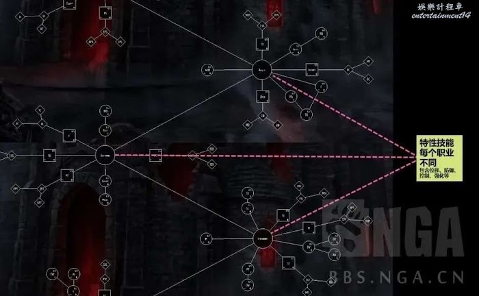 所有職業的技能樹結構都是一樣的,區別在於其中的技能種類和效果不同