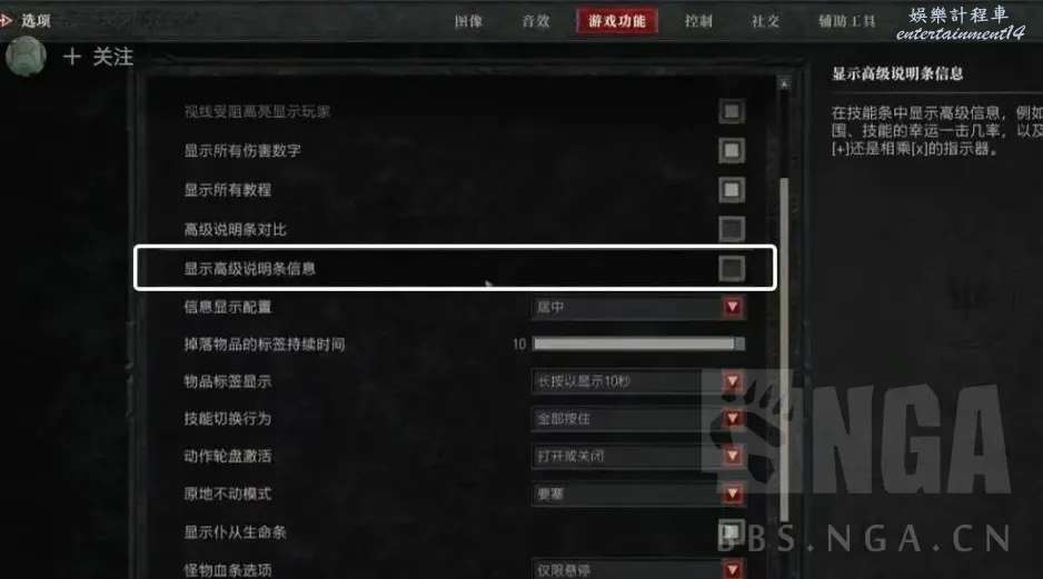 在設置中的遊戲功能頁籤下,可以勾選高級說明條資訊