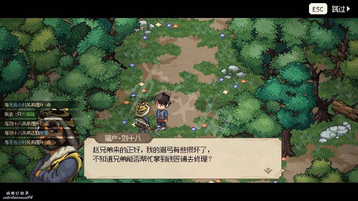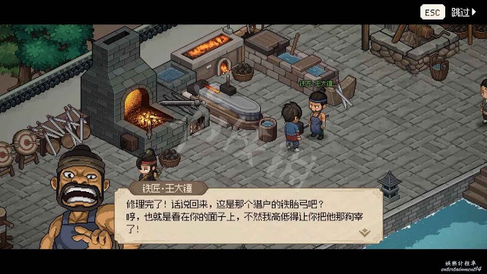 與劉十八互動,選擇“修弓”,他會委託主角找王大錘修補自己的弓。
