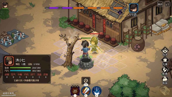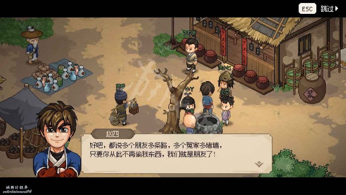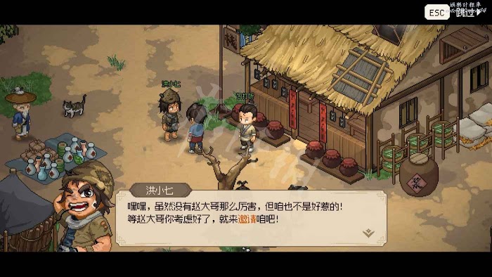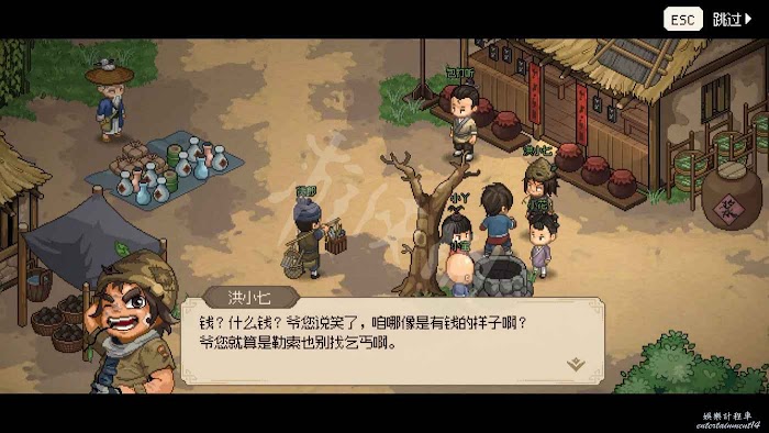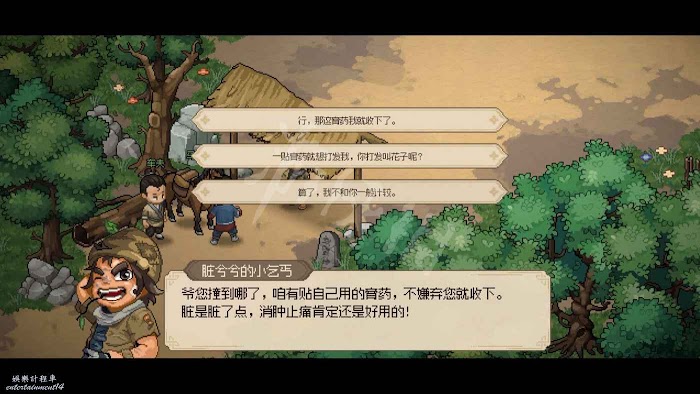 來到客棧門口與小乞丐洪小七對峙,他會裝傻充楞,選擇第一項進入戰鬥。