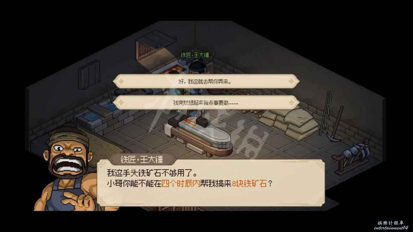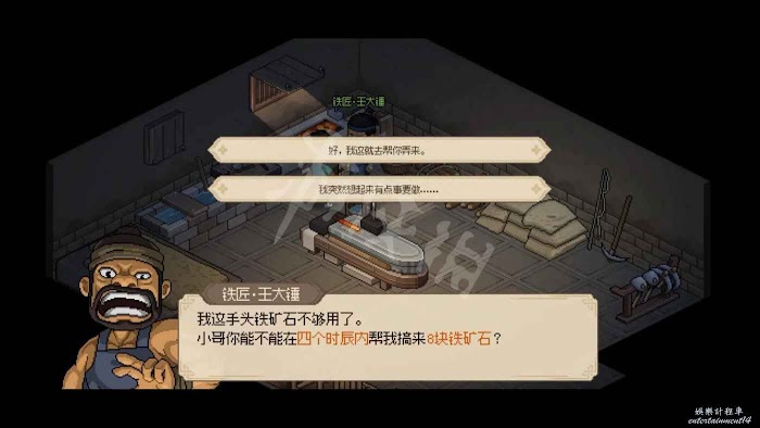 任務比較簡單,在四個時辰內收集8塊鐵礦石即可。