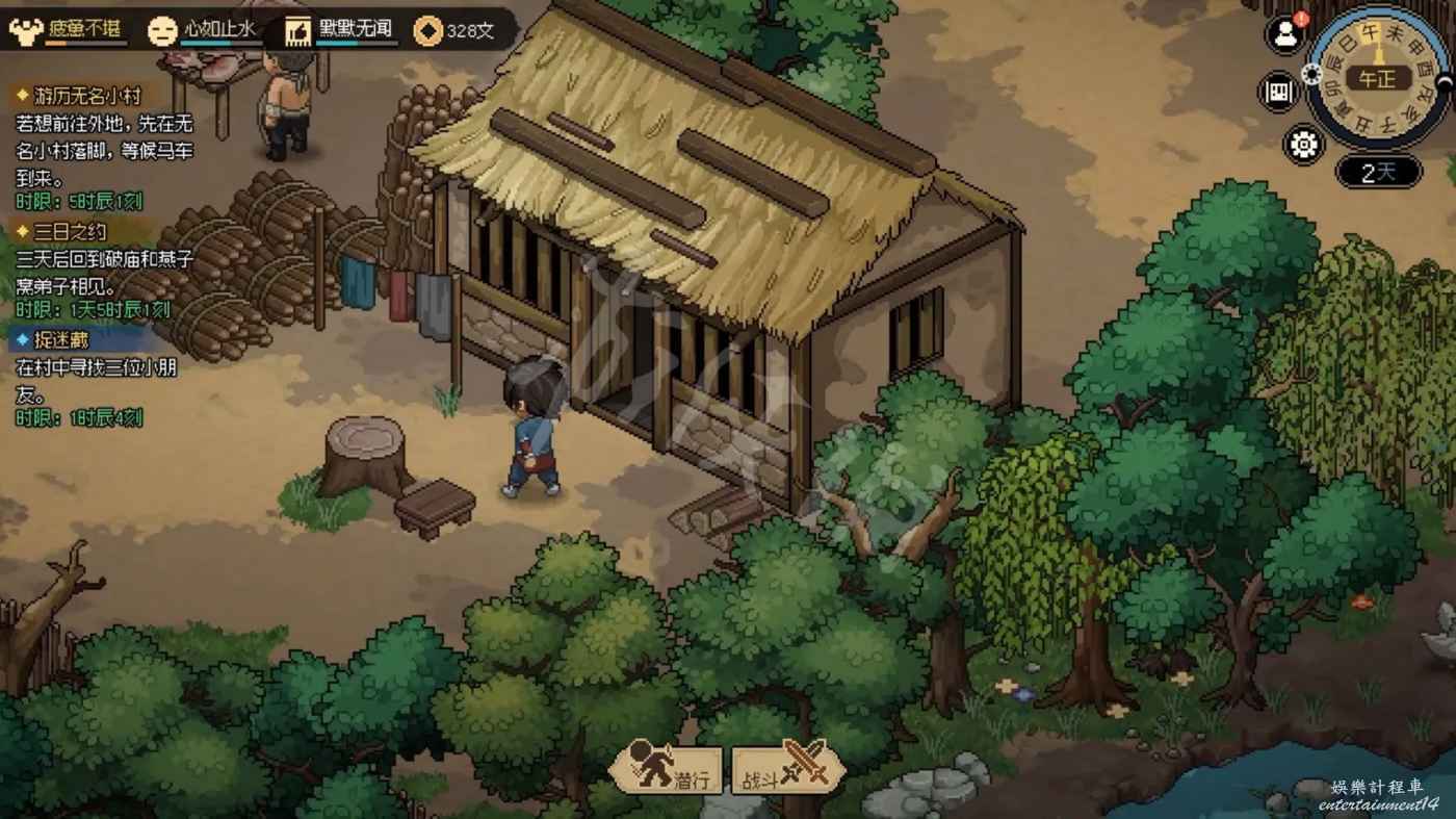 捉迷藏開始後,玩家要在兩個時辰內找到3個小孩子,他們分別藏在了村中三間屋子裡,可以根據過場動畫時三人走向確定大致方位。