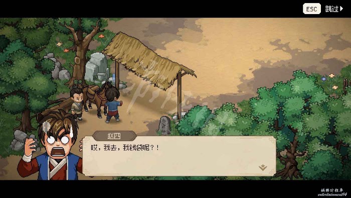 乞丐離開後,主角會發現自己身上錢袋不見了。