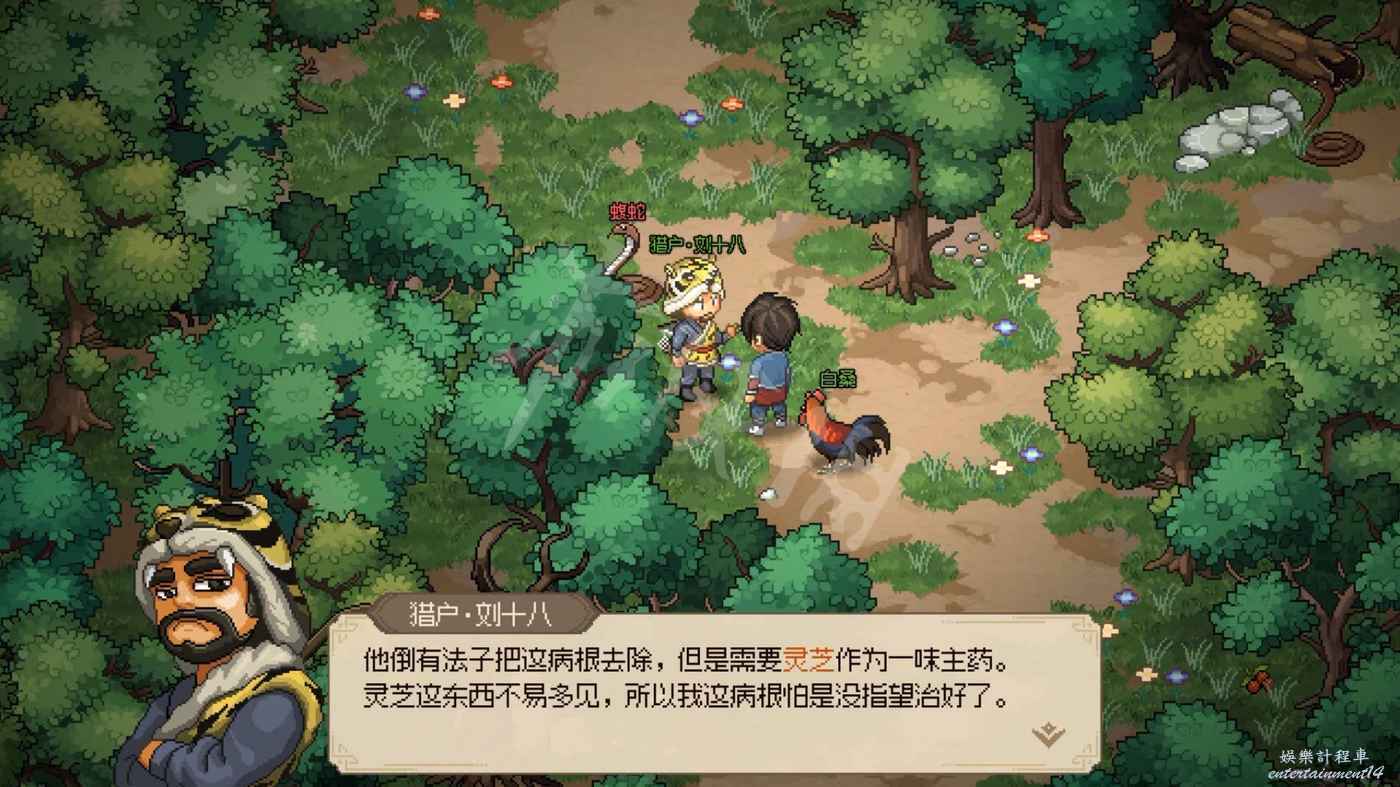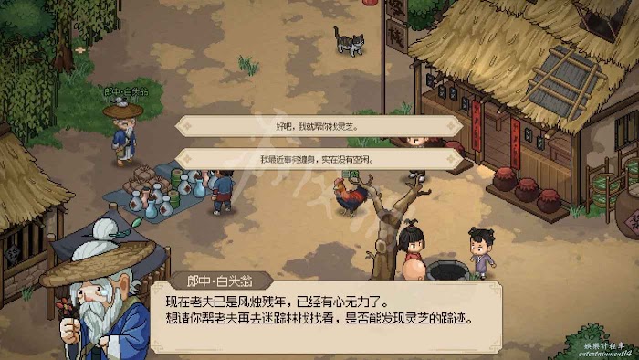 與白頭翁對話,他會委託主角前往迷蹤林採集靈芝。