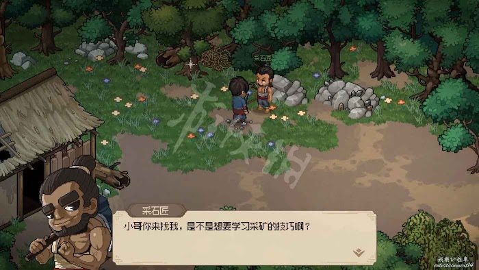 和村北采石匠對話,會學習如果採集資源,並且會獲得一把礦鎬。