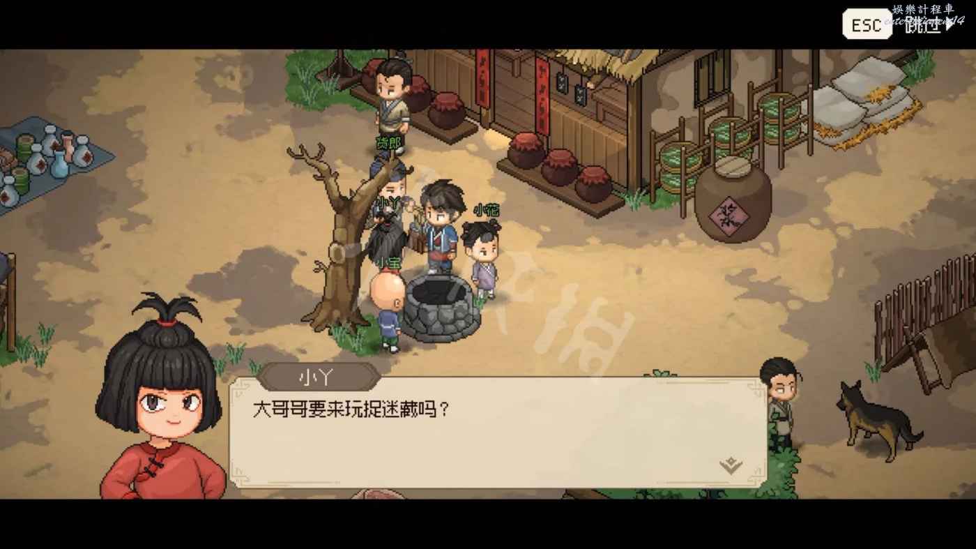 在無名小村中間的水井旁有三個小孩,找穿紅衣服的小丫對話會詢問是否要玩捉迷藏的小遊戲。