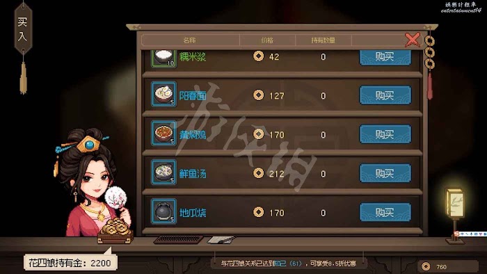 如果廚藝點數夠的話可以直接做給他吃,如果不夠的話可以前往客棧找花四娘購買這三種菜餚。