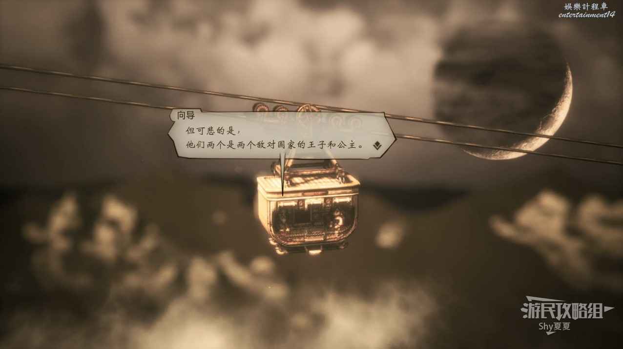 纜車啟動,老人講述了一個故事。兩個敵對國家的王子和公主私奔後建了一座城,也就是遺種鎮,纜車的終點站。