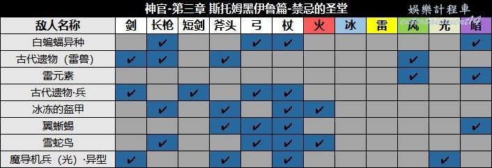 進入遺種城,敵人弱點如下: