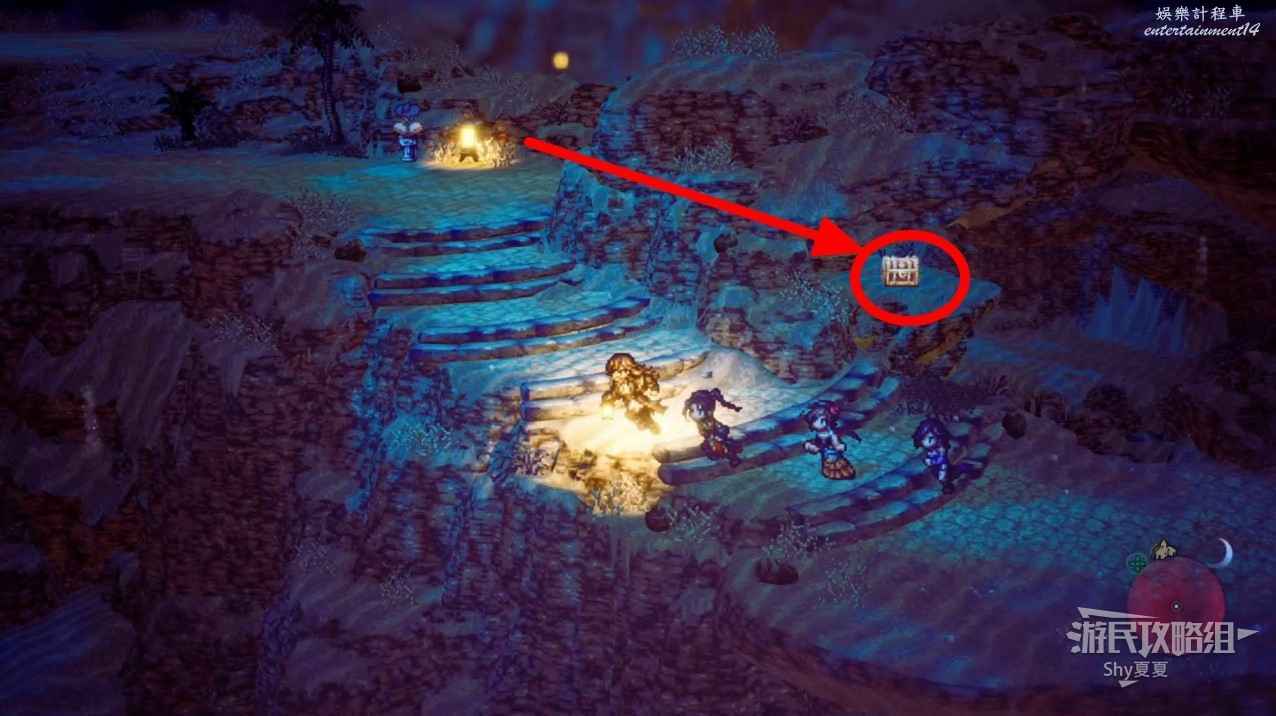 下圖紅圈的屋內有兩個寶箱,打開分別獲得【惡夢瓶】×2。