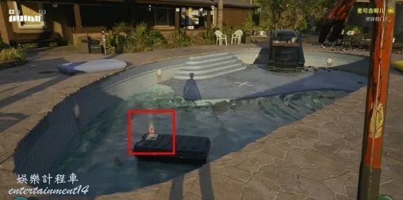 潔西家北邊的豪宅院子裡,泳池邊的躺椅上可以找到。