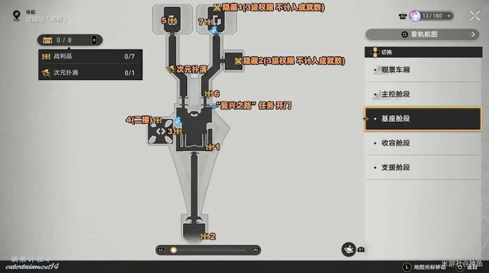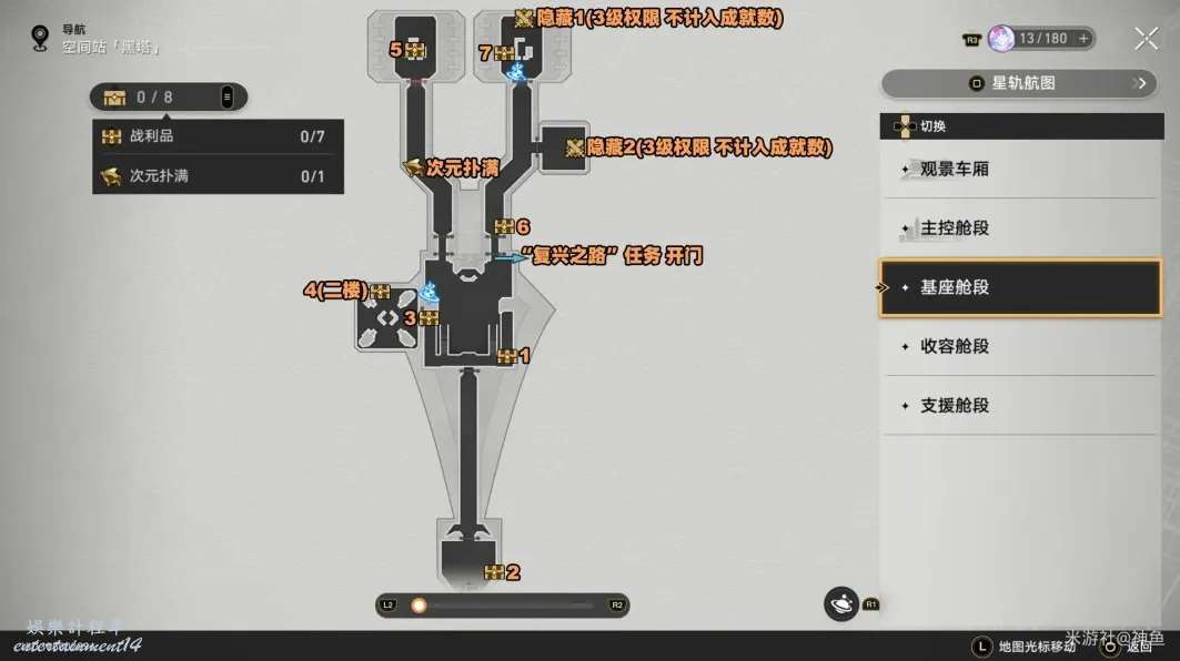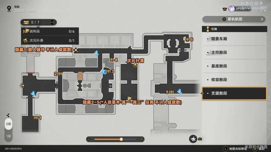 崩壞 星穹鐵道 黑塔空間站寶箱位置一覽 6 5 月 2023-05-06 廣告 作者:神魚 來源:米遊社論壇 基座艙段 7個戰利品+1個次元撲滿+2個隱藏寶箱。 分佈圖 收容艙段 9個戰利品+1個次元撲滿+6個隱藏寶箱。 分佈圖1層 分佈圖2層 支援艙段 6個戰利品+1個次元撲滿+6個隱藏寶箱。 分佈圖2層 分佈圖1層