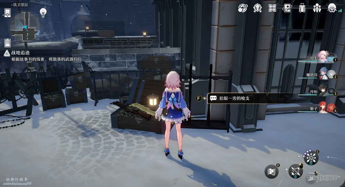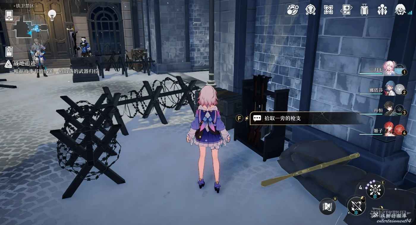 調查旁邊有2支槍的槍架,把槍放在槍架上,共有3處位置,參考下圖。
