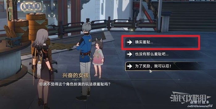 步驟①:在【外交】階段與【興奮的女孩】對話選擇「確實羞恥」