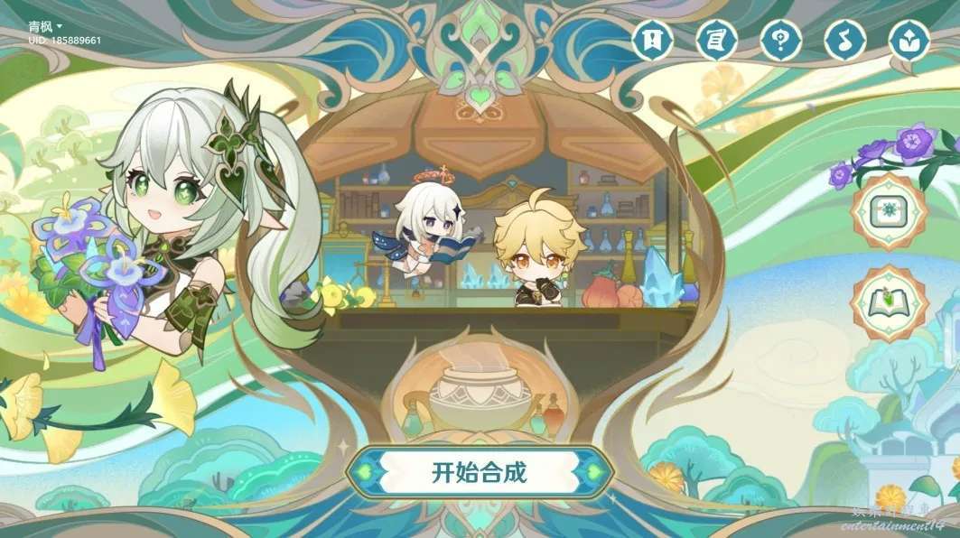 納西妲和賽諾各有兩款特殊材料,小遊戲頁面左邊是納西妲,右邊是賽諾,兩位角色每天隨機出現一位,通過對話後獲得角色的特殊材料,每天獲取1次,一共需要與兩位元角色對話2次獲得全部特殊材料,然後對照下面藥劑配方合成即可;