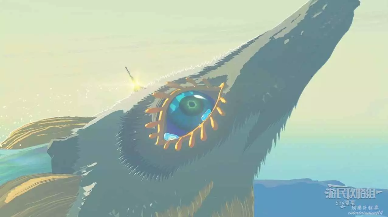來到魚的腹部,往西南方向的下方看,可以看到碎石拼成的水滴。朝著水滴中心拉弓搭箭,然後附上【王的鱗片】,射出去就OK了。回去找希多,多準備一些丘丘膠或者水之果,要BOSS戰了。