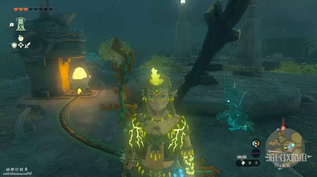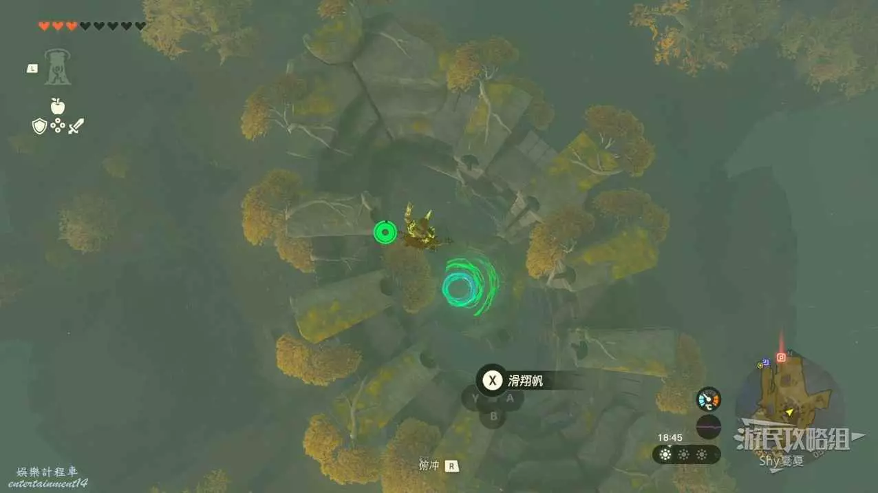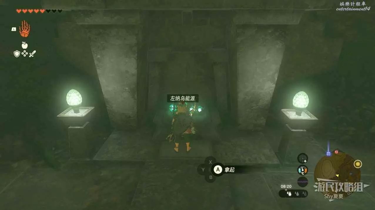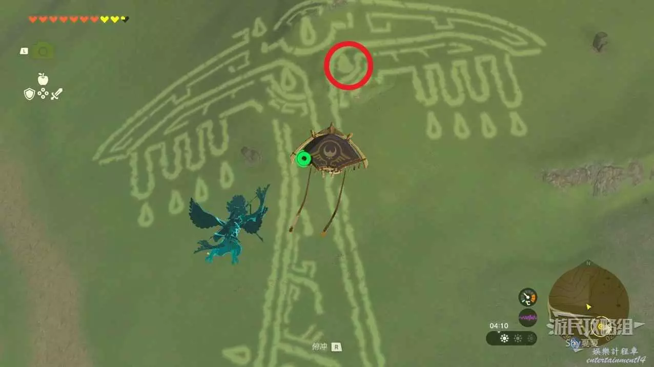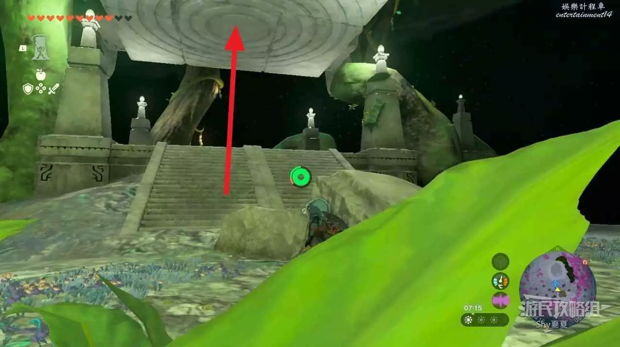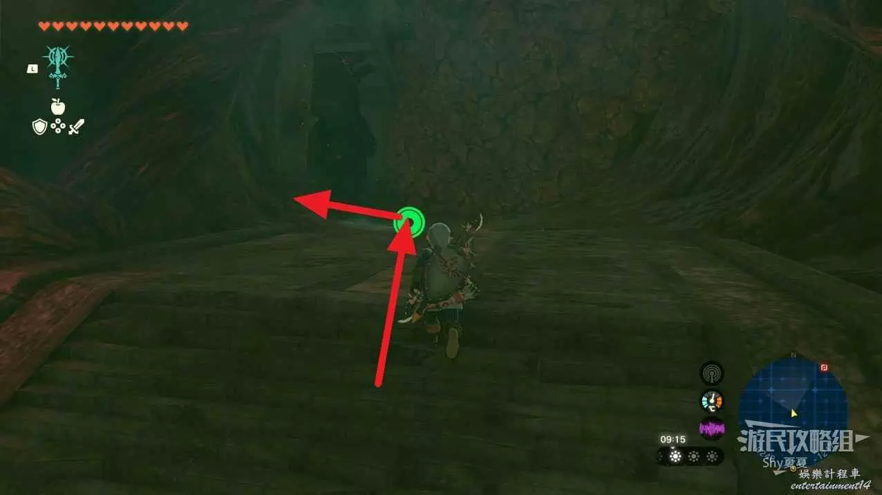 看到第二座神廟時,使用滑翔傘下降。在10顆心回滿的狀態下,推開深處的大門。