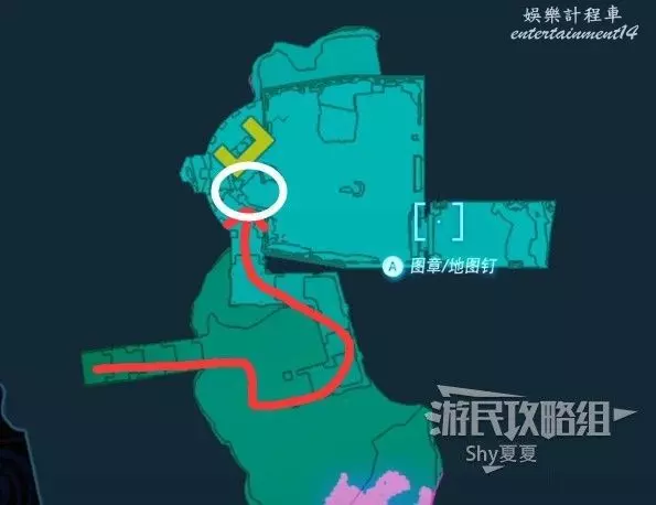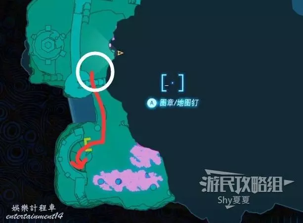 擊殺兩個敵人後,從山洞的另一個門出來,出門後立即右轉,爬上紅圈處的根須。爬上來就是神廟了。