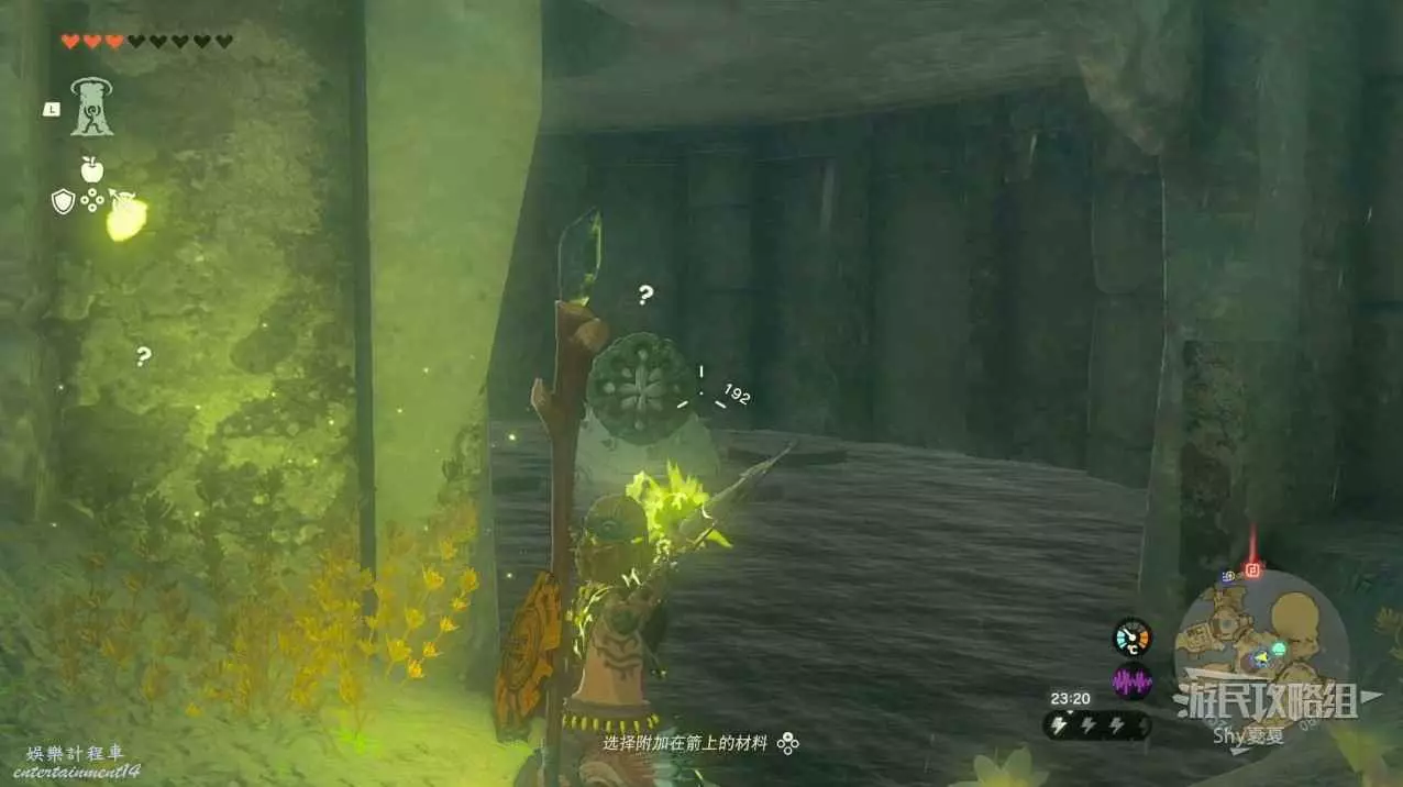 洞窟裡還能看到一個發光的青蛙,使用弓箭攻擊它可以掉落一個收集品【魔猶伊的遺失物】。