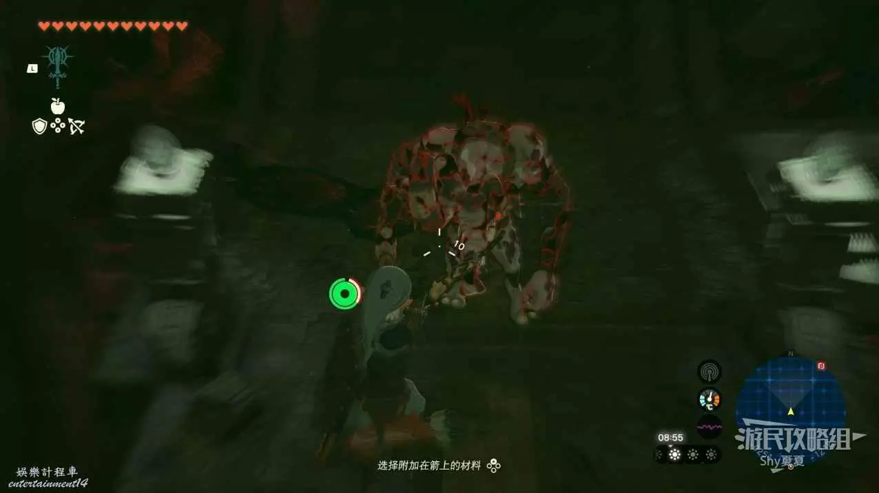 這個BOSS第一階段可以直接用炸彈箭大片消滅敵人,第二階段如果BOSS蓄力蔓延瘴氣,就用弓箭射擊它的頭部打斷施法。