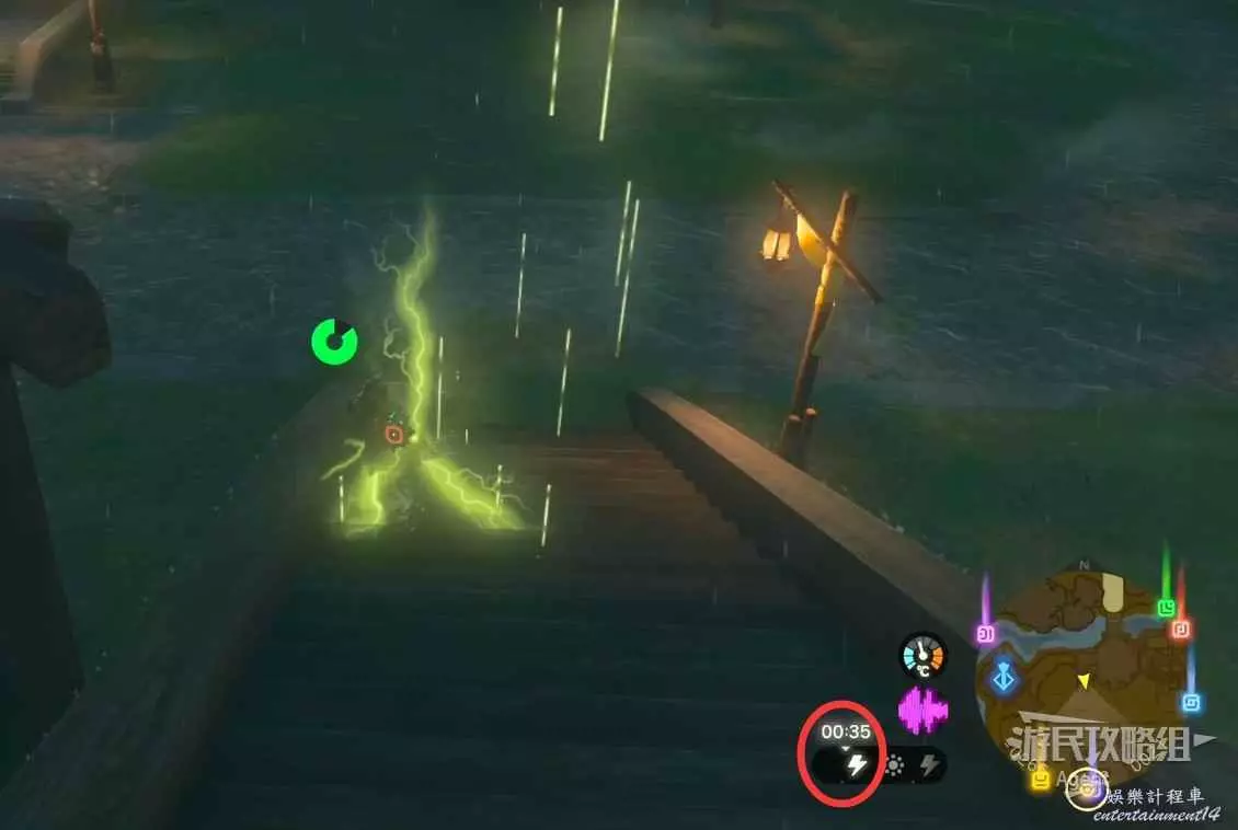 把劍盾等裝備切換成木制的,就不會被雷劈了。等後面獲得護雷頭盔等裝備,也可以起到避雷的效果。
