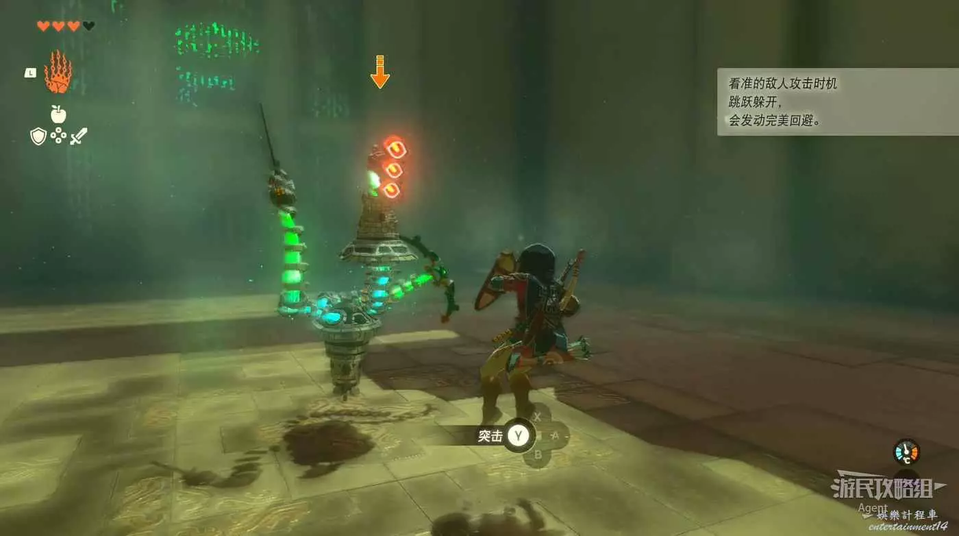 進入神廟,學習橫跳、後空翻閃避敵人攻擊。在恰當時機閃避會觸發完美回避,然後發動反擊。