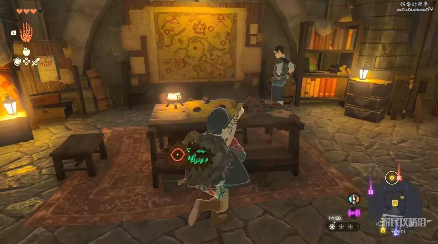 普爾亞的房子裡可以查看《關於天地異變的考察》,得知左納烏調查隊的據點在東南面的卡卡利科村。桌上還有海拉魯地圖示著村子和神殿位置。