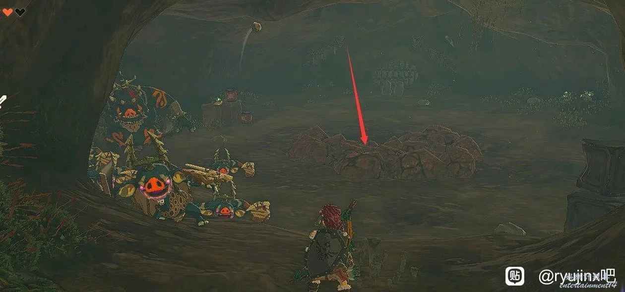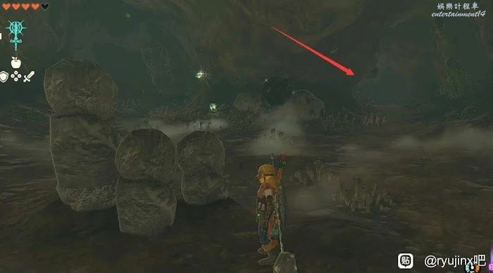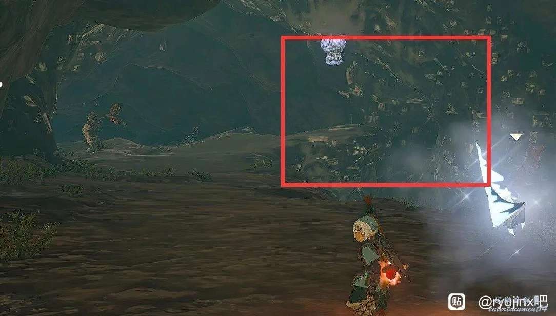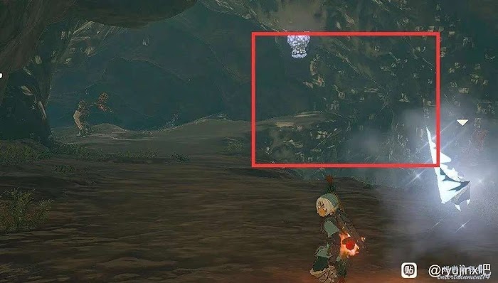 裡面有很多夜光石礦,有一片是接近天花板形成一堵牆的,炸彈箭炸開就找到了