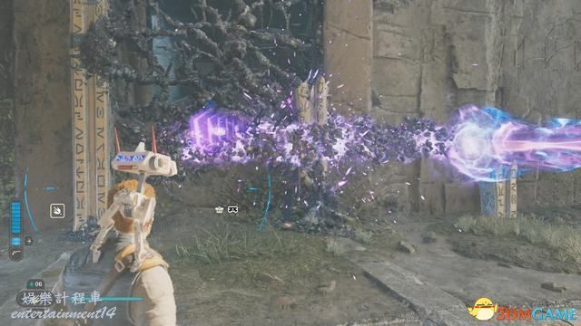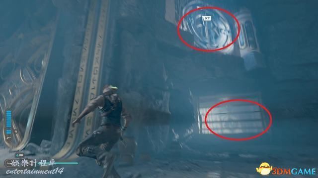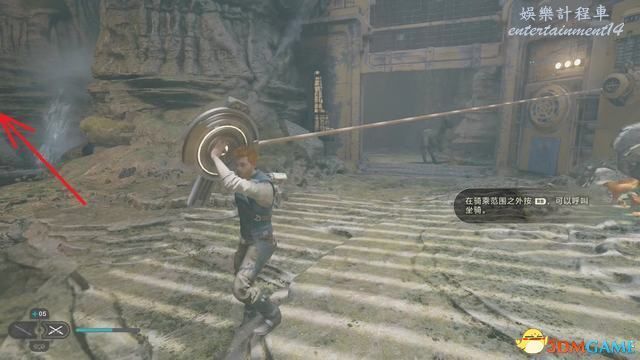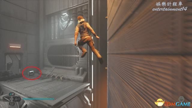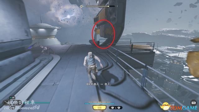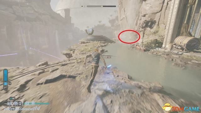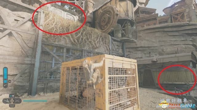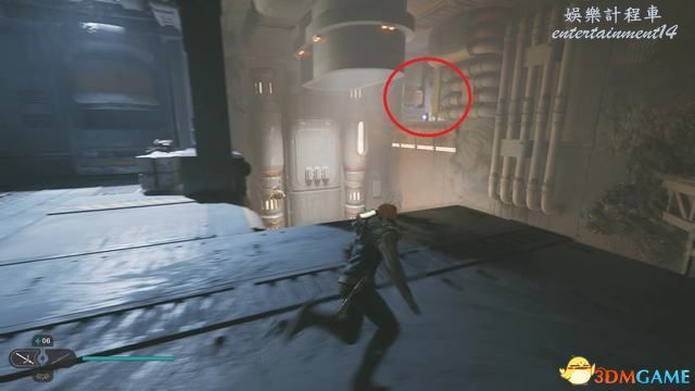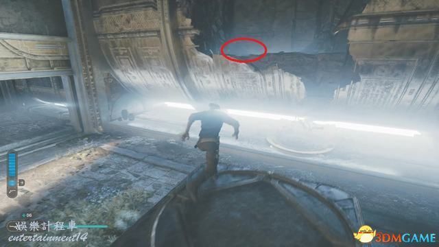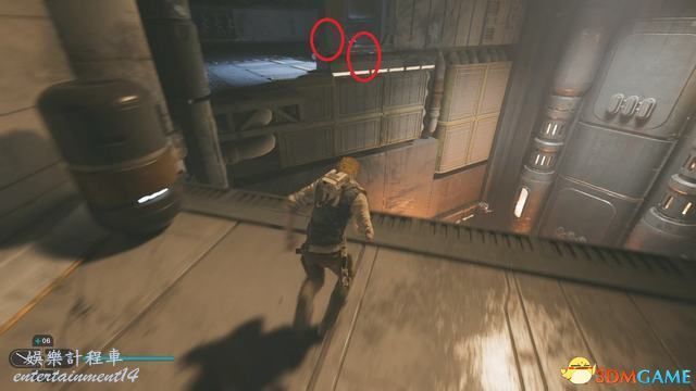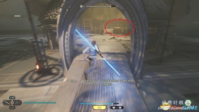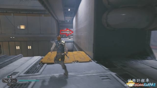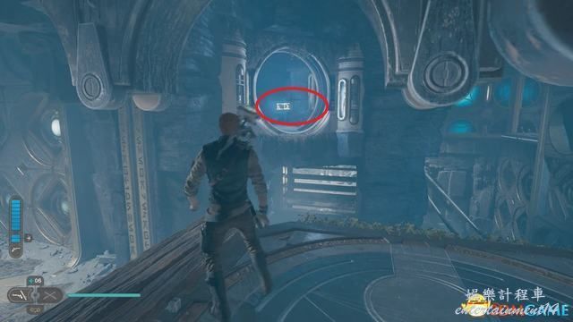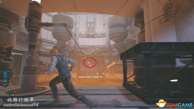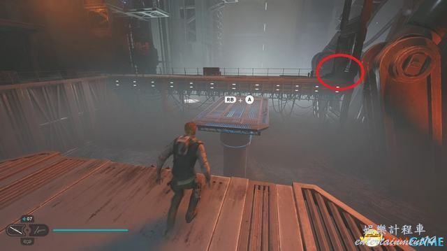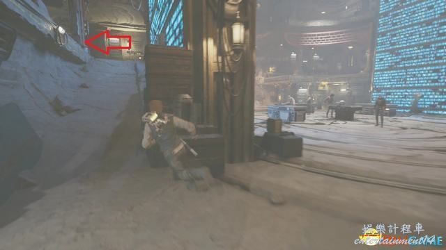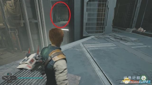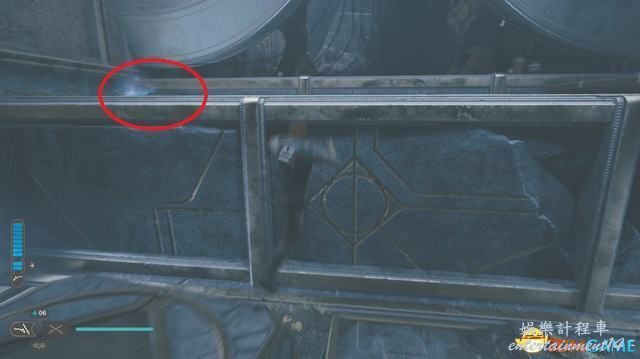 第二個光束戰鬥區域,下圖位置使用勾爪,繞一圈可以抵達上方平臺開箱子。
