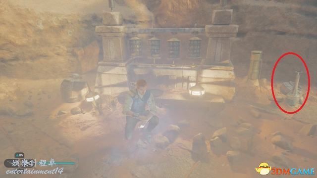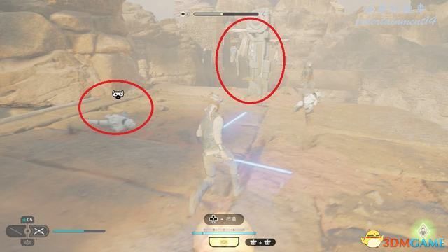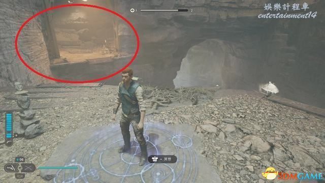 上文的反方向高地,使用原力抬起石堆,拿到拾取物。