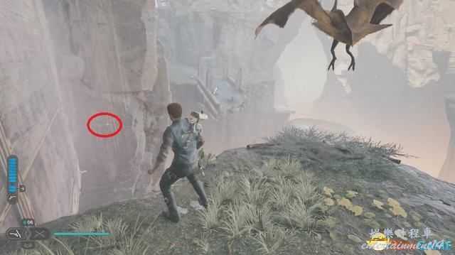 滑翔至最後一個平臺前,注意右側的裂縫。