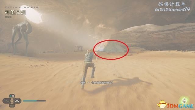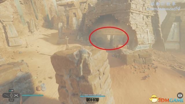 清理敵人後轉身出門,右轉抵達標記石頭,可以躲避沙蟲攻擊。