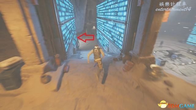 抵達箭頭處後,注意下圖標記位置,觸碰就能拿到收集品光碟。