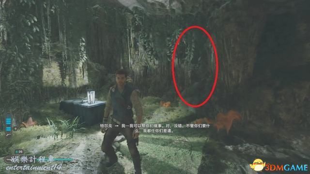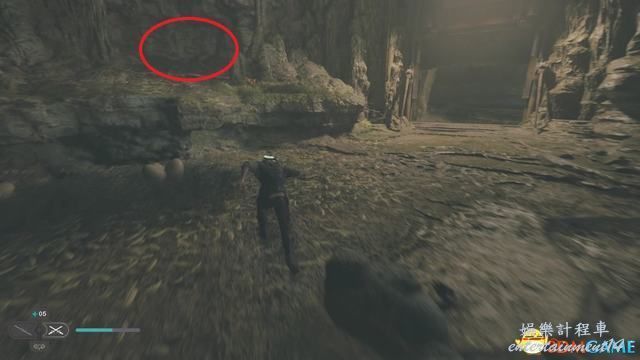 接上圖,左側迴響後砍藤蔓往前。進入下圖中的隱藏通道,有小彩蛋。