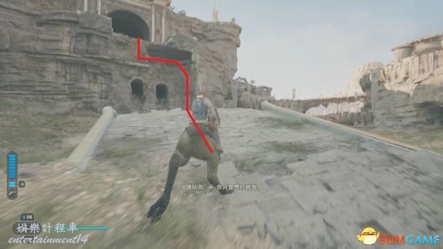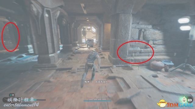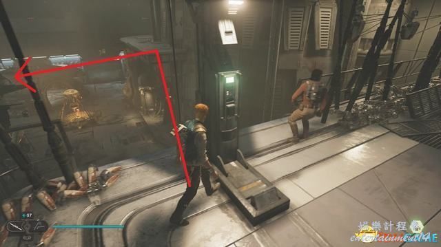 下圖位置,先不要走主要路線,下面那層可以探索。