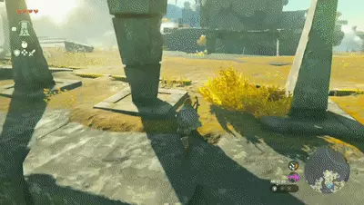 正方體的石雕連在一起排成特定的形狀,使用究極手把附近散落的石雕拼回去組成一個完整的形狀即可啟動呀哈哈。