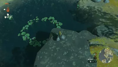 有時候會遇到浮在水面上的葉子組成了一個圓圈圖案,從高處跳進圓圈中間即可啟動呀哈哈。