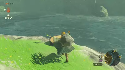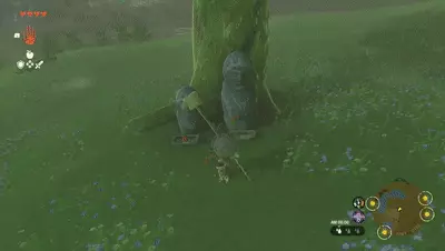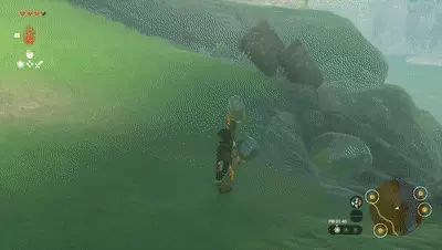 有些樹杈擺成了底座的形狀,看起來就很不自然,使用究極手把附近的岩石擺在樹杈上即可啟動呀哈哈。