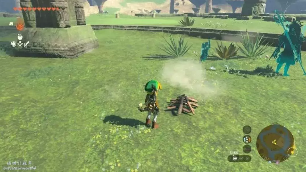然後點燃一堆柴火,消磨時間到中午12.00即可,然後遮擋物消失,下去直通寶箱。