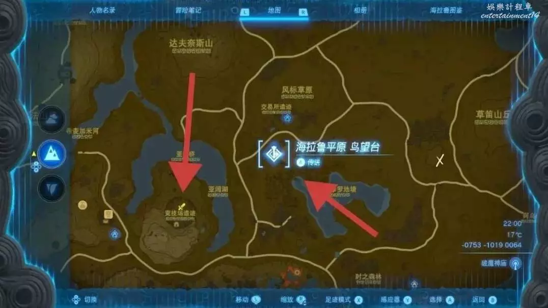 地圖中間,競技場遺跡,最好選擇從鳥望台飛過去
