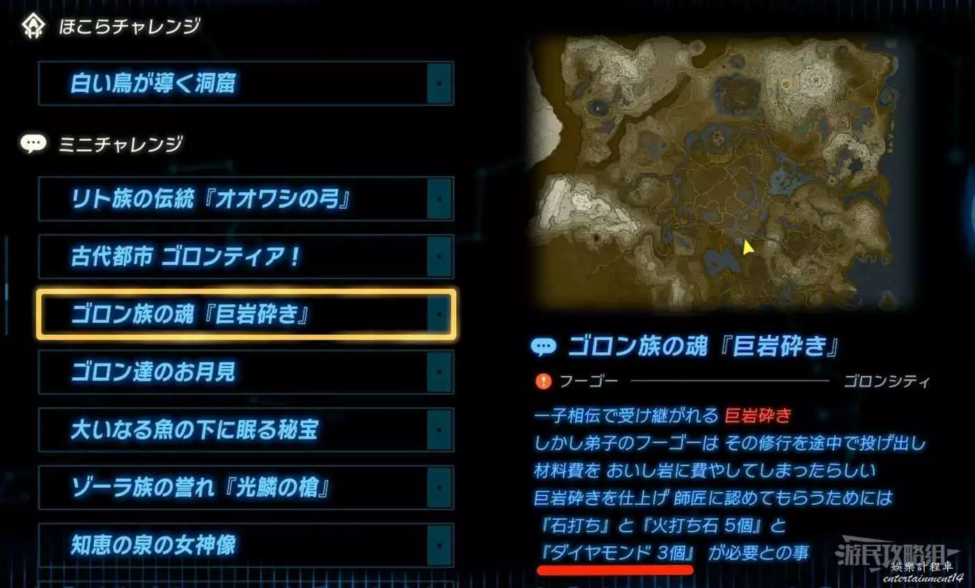通關火之神殿后會解鎖迷你挑戰「收購琥珀」(鼓隆城),遇到NPC「拉梅拉」,她會用比商店更高的價格收購指定的礦石。儘早解鎖就能獲得更高收益。