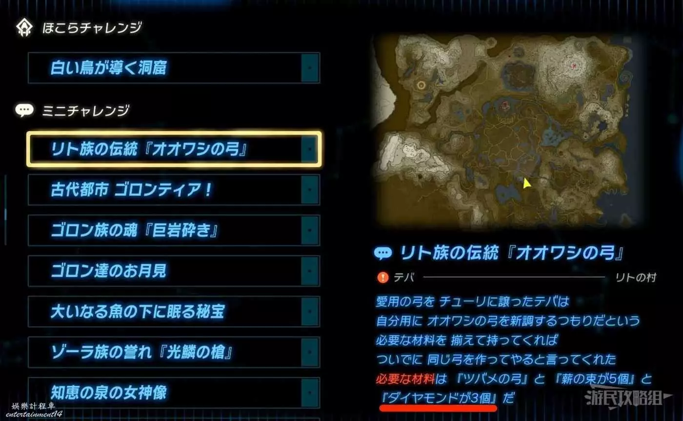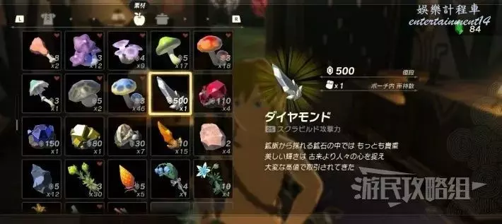 但建議平時在身上保留12塊鑽石,在各地的迷你挑戰中可以製作『大鷲弓』或『碎岩巨劍』等「英傑武器」(製作消耗鑽石×3),所以建議保留12塊鑽石。