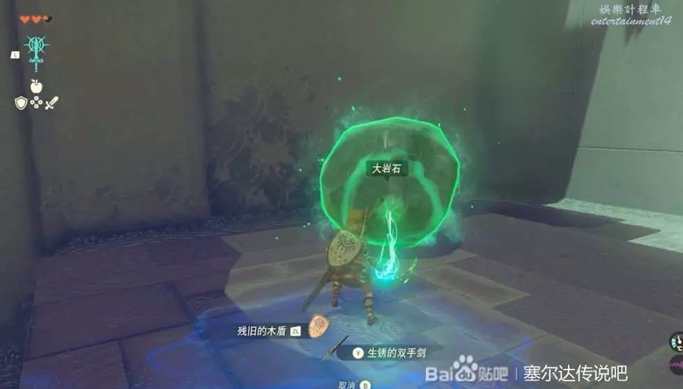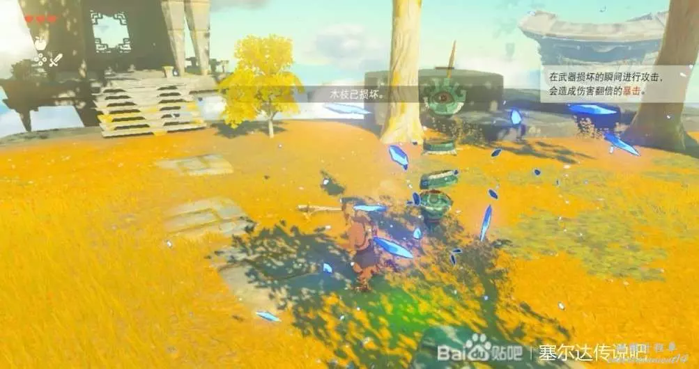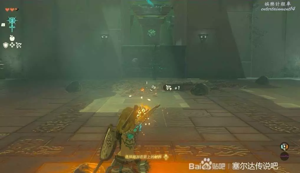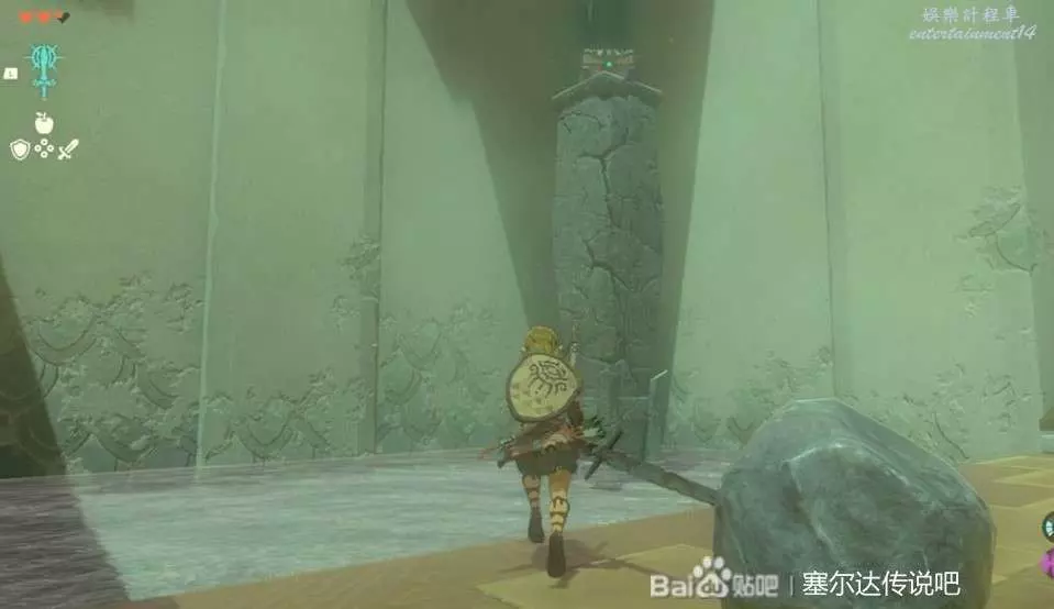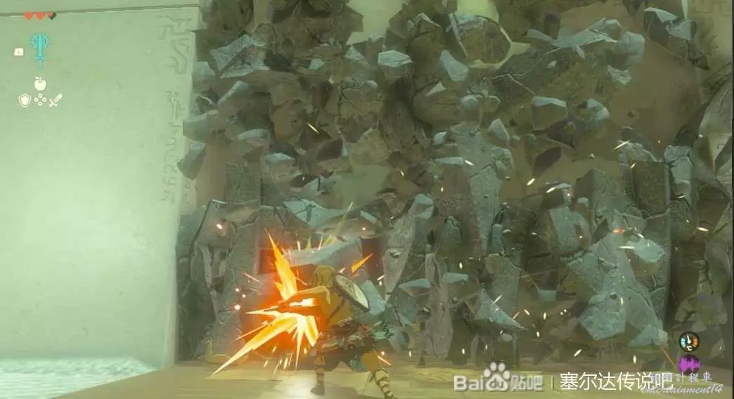 這個神廟很簡單,把武器和石頭組合在一起就能敲碎牆壁。