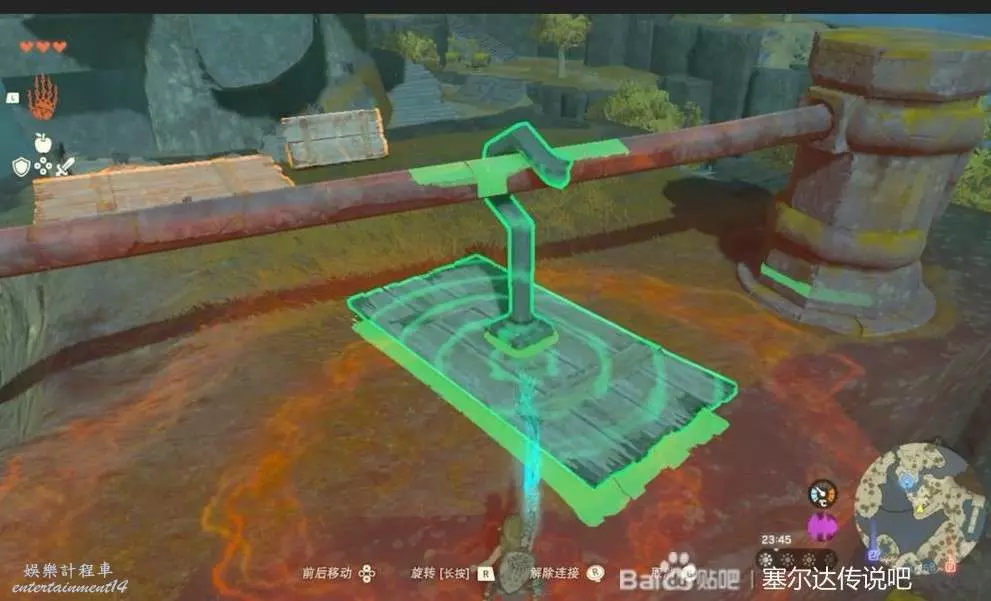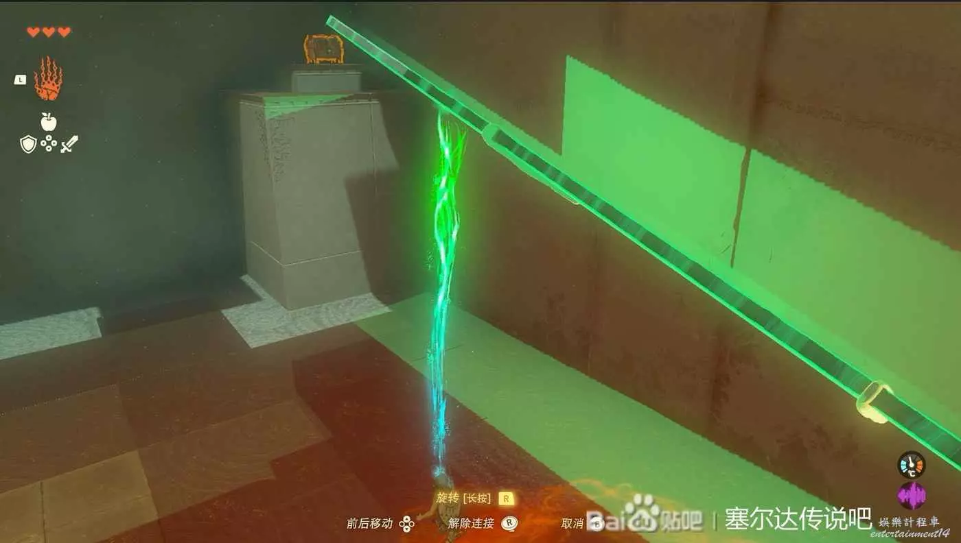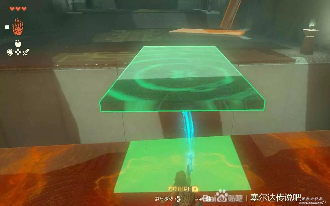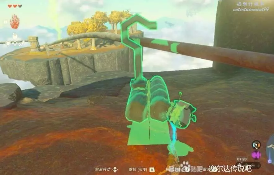 第一個神廟烏可烏侯,獲得究極手以後可以抓取材料還可以把材料拼接起來,過第一個坑用石板搭橋就行。