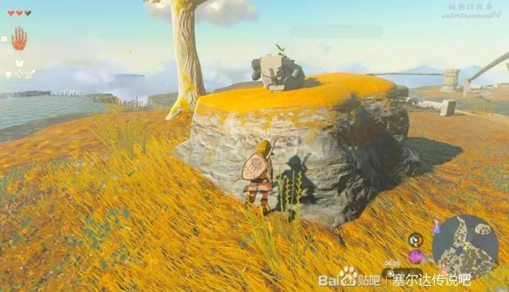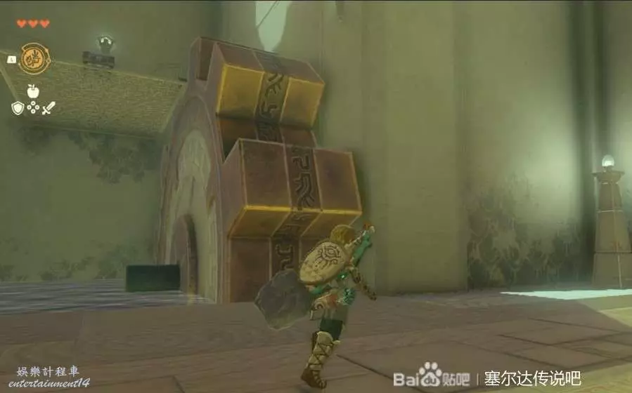 時之神殿門口這個拿盾的,直接丟樹枝給他能破盾,之後幾下帶走就行了。打完他發現進不去,老規矩要去找神廟,第一個就在旁邊可以用望遠鏡標記然後一路跑過去就好了。