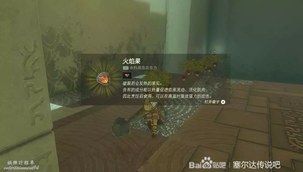 右邊有很多的火焰果,用它附魔弓箭,點燃上面的藤蔓。然後寶箱就會掉下來,裡面是鑰匙拿到鑰匙開門。