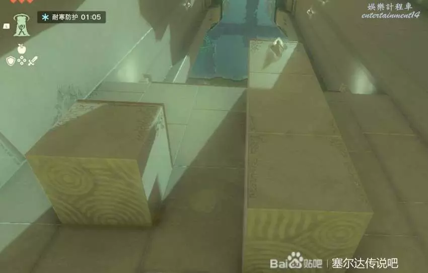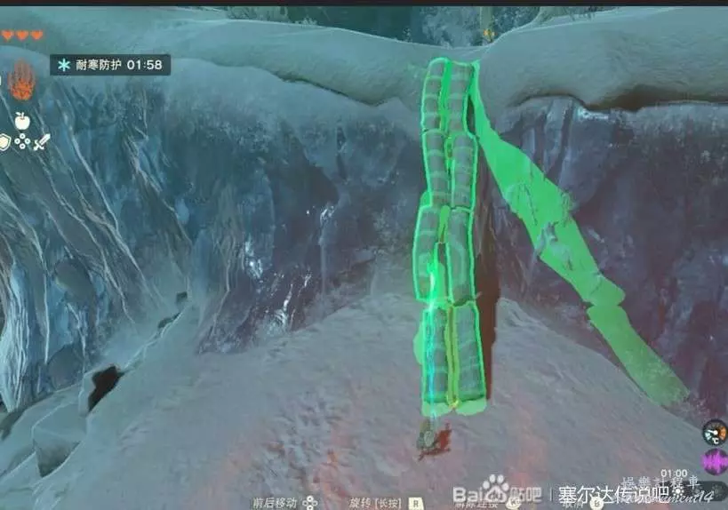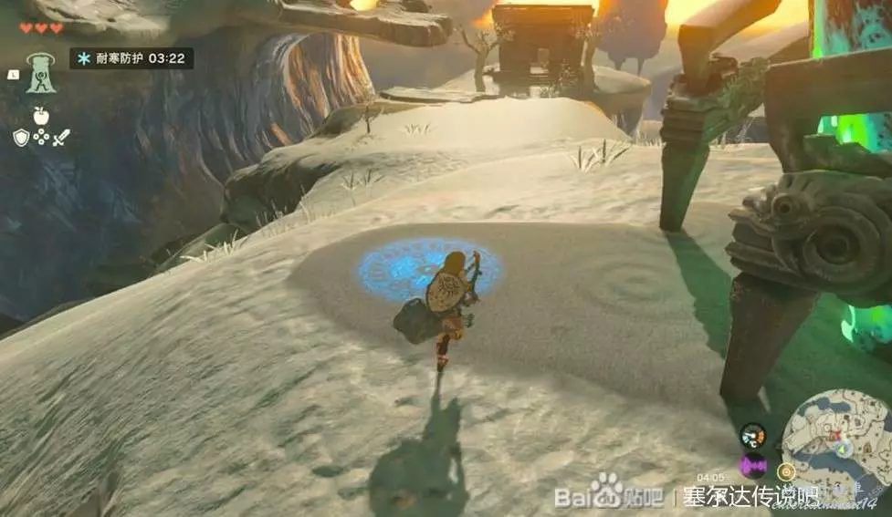 拿到了三種能力以後就可以回去開門了,但是下山之前先來拿一下防寒服,神廟前方有個突出的平台用通天術上去。