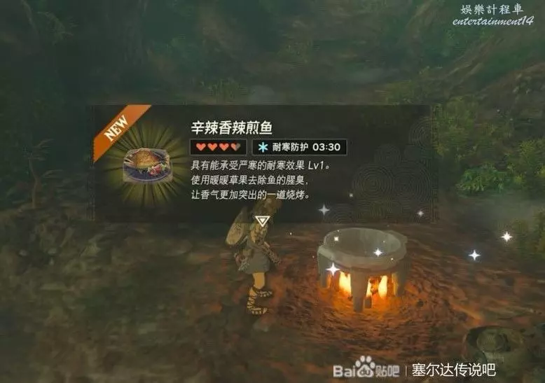 繼續前進來到豎穴的洞窟,這裡有暖暖草果和一個鍋,需要用它來多做幾個抗寒的食物,因為接下來需要去到雪山區域。材料隨意組合只要別和其他有特殊效果的材料放一起就行,總共有個5-6個就行了。
